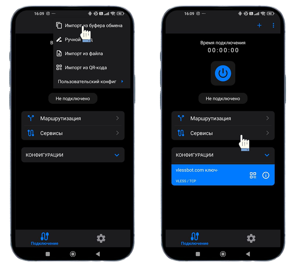 Выбираешь «Import from Clipboard» (Импорт из буфера обмена). Приложение автоматически распознаёт настройки